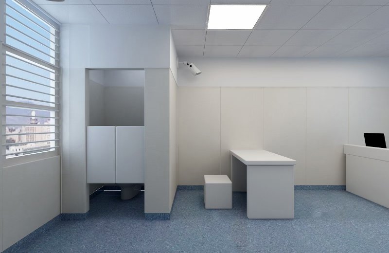 1.對被審訊椅子要進行加鎖、加重處理。 2.桌面設備帶有固定必備的開關插座、按鈕和監(jiān)控設備等。 3.審問桌不便加抽屜,防止被審訊人情緒激動拉出自殘,必須有一定高度的擋水線,以遮擋嫌疑人的視線,避免對偵查人員的行為進行揣摩。 留置室墻面防撞軟包材料:采用和民用軟包材料不一樣的專業(yè)材料,是具備環(huán)保阻燃要求的,在生產(chǎn)上如果需要對色彩進行配料,所以要用的防撞軟包材料盡量一個批次進行生產(chǎn),施工時將防撞軟包材料按調(diào)整好的排列順序進行施工安裝。 墻面施工需要注意的是軟包陰陽角的處理: 1需要對軟包裝材料進行切割或倒角。所用刀片建議使用鋒利耐用的進口刀片,以避免在切割或倒棱軟包裝材料時出現(xiàn)毛刺和粗糙表面。