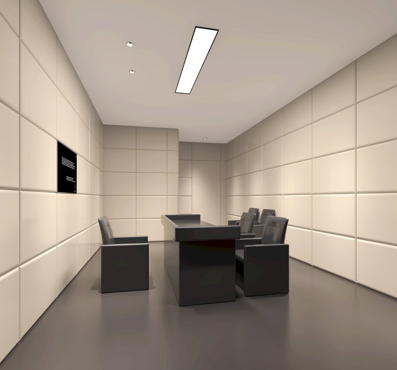 軟包的這種使用性質(zhì)決定了其必須同時具備很高的防撞性能及阻燃性能,談話室是紀(jì)委監(jiān)委辦案區(qū)辦公的場所,消防和人身安全是設(shè)計(jì)的要點(diǎn)(防撞性能不足會造成人員受傷影響辦案進(jìn)程,阻燃性能不足會導(dǎo)致消防安全隱患),所以軟包的材質(zhì)選擇及制造工藝。